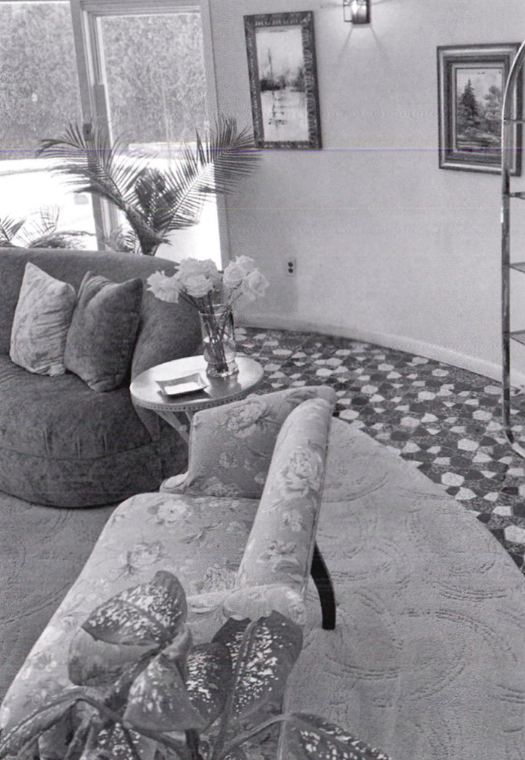 (C) Một số đệm đã được xếp chồng lên nhau trên sàn.