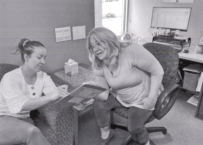 Đáp án bẫy: "The woman is filing some documents." (Người phụ nữ đang sắp xếp hồ sơ).